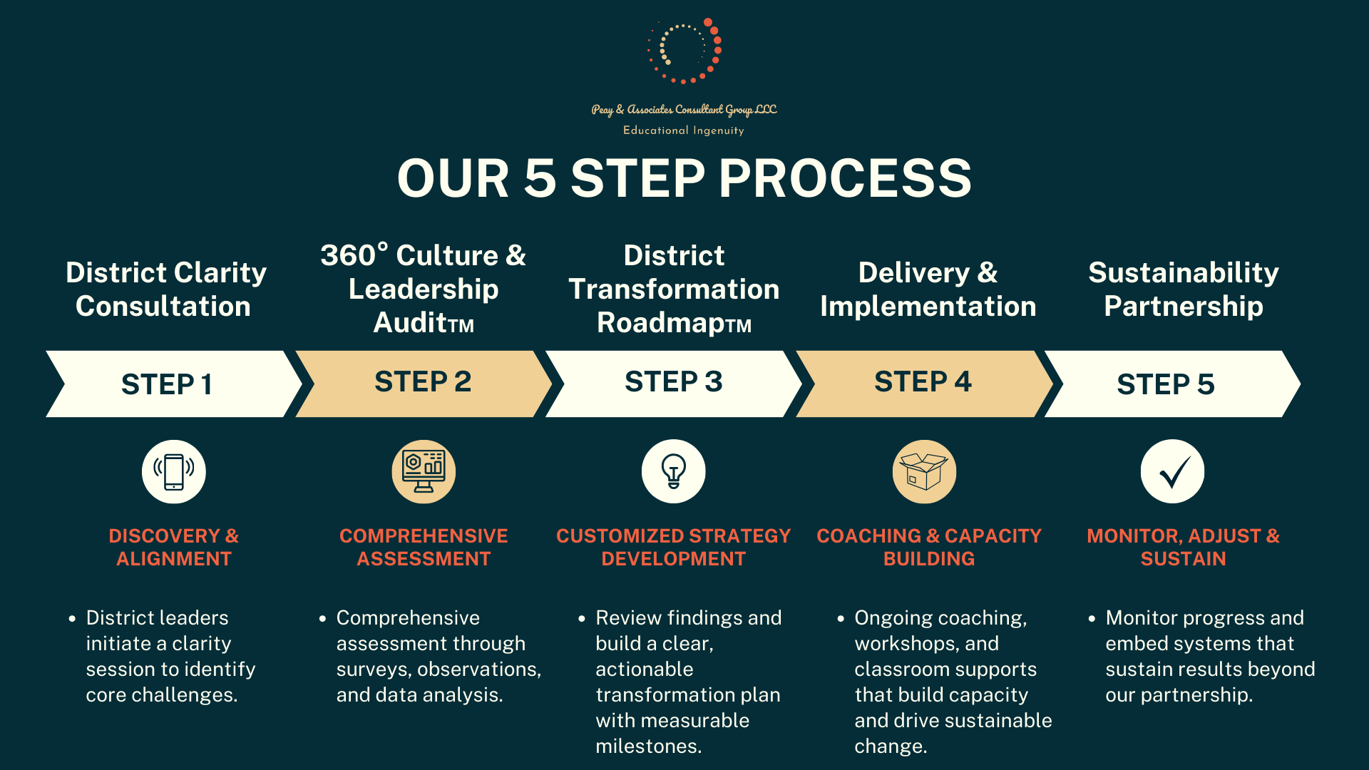 Let’s explore how our 5-step transformation model can elevate your district’s culture, empower principals, and improve outcomes for all students.